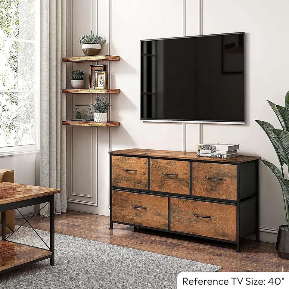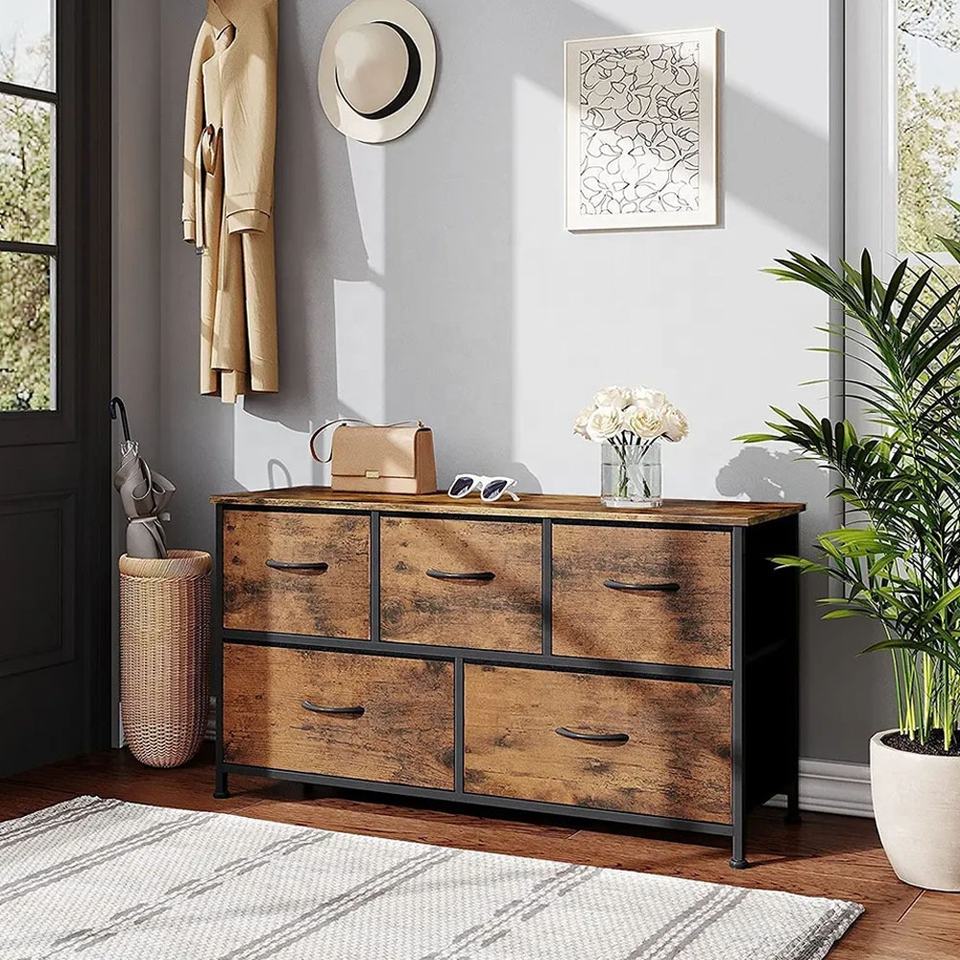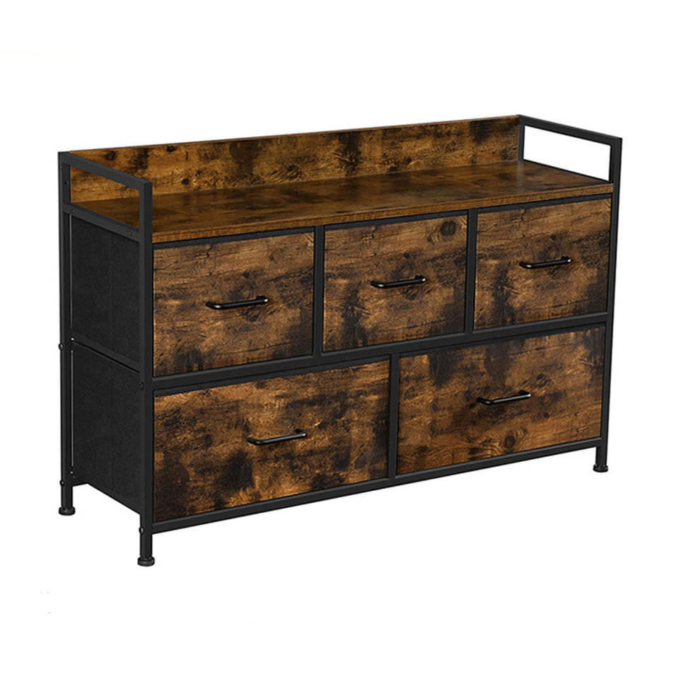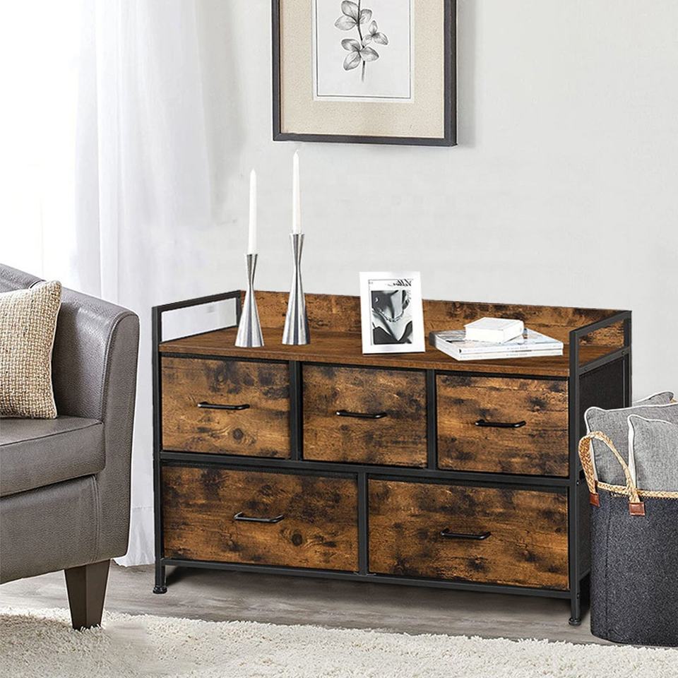 K & B Tour de rangement pour coffre haut avec bacs en tissu et tiroir à cadre en acier pour le salon, la table de chevet ou la commode