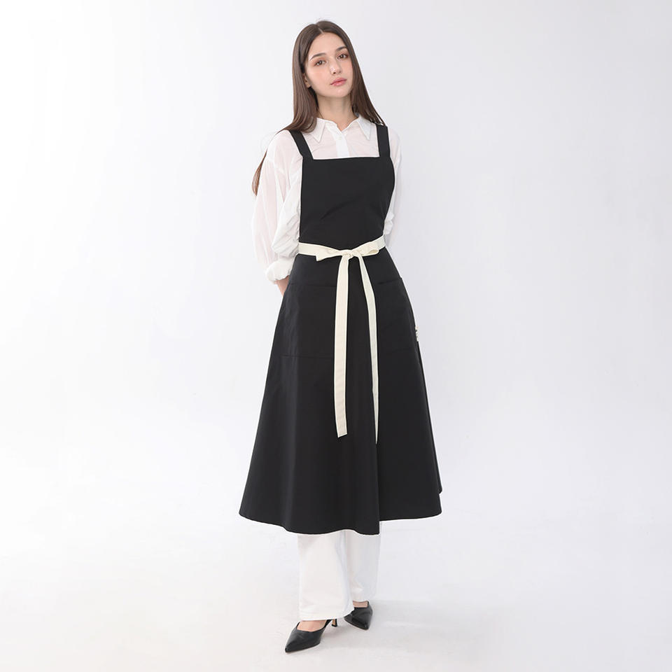 [K.BLANC] Tablier évasé élégant tablier évasé à taille réglable avec tablier à bretelles au design chic classique
