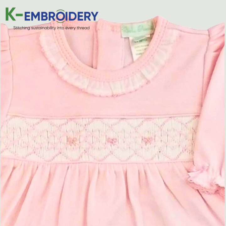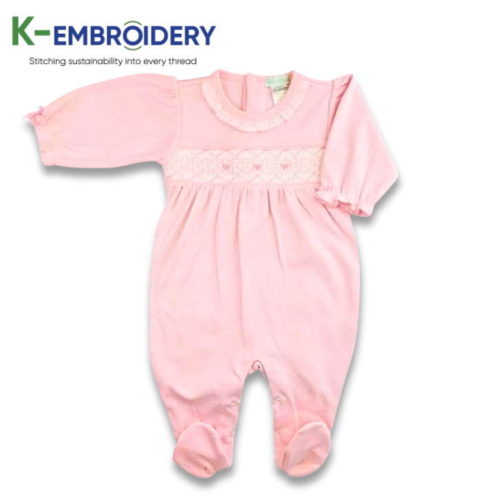 K-broderie belle rose solide smocké combinaisons body pour filles doux Maxi à manches longues vêtements d'été ODM