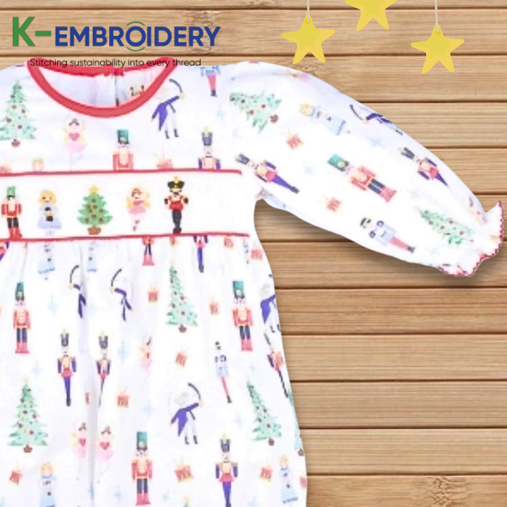 K-Embroidery Beautiful White Solid Christmas wholesalejumpsuits body, vêtements pour enfants smockés, vêtements pour enfants SBS090