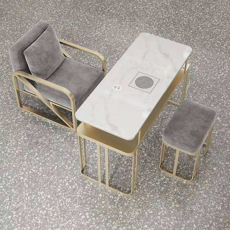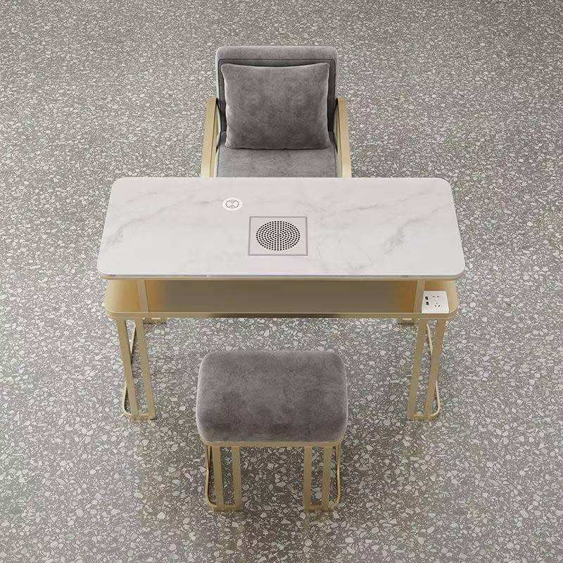 Ensemble table et chaise de manucure gris professionnel K, un ensemble complet de mobilier de salon avec rangement, port USB et aspirateur