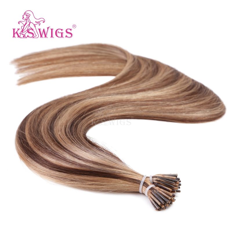 Extensions de cheveux I-Tip K.SWIGS P4-27 couleur 100% cheveux humains, cuticules alignées, lisses, durables, sécurisées, réutilisables, longueur personnalisée, texture.