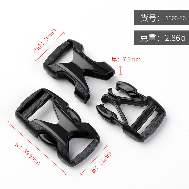 Boucle en plastique en forme de K, diamètre intérieur de 10mm, réglable pour sac à dos d'extérieur, accessoires de sac DIY, couleur unie noire
