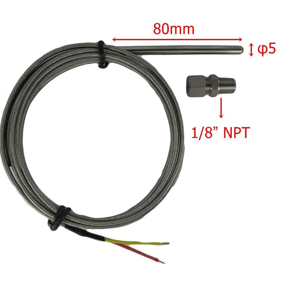 K-type exposed junction thermocouple, 1/8 thread, stainless steel 304