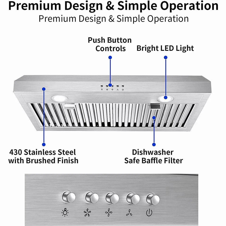 Hotte de cuisine encastrable 30 pouces sous armoire 600 CFM à 3 vitesses en acier inoxydable
