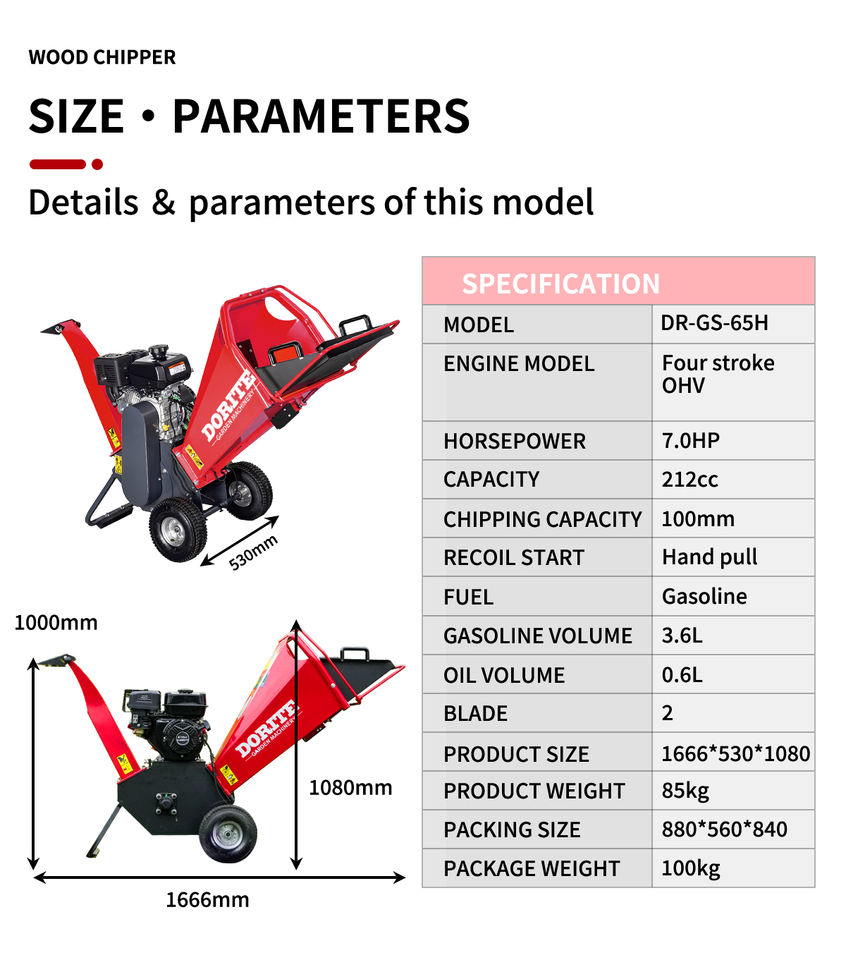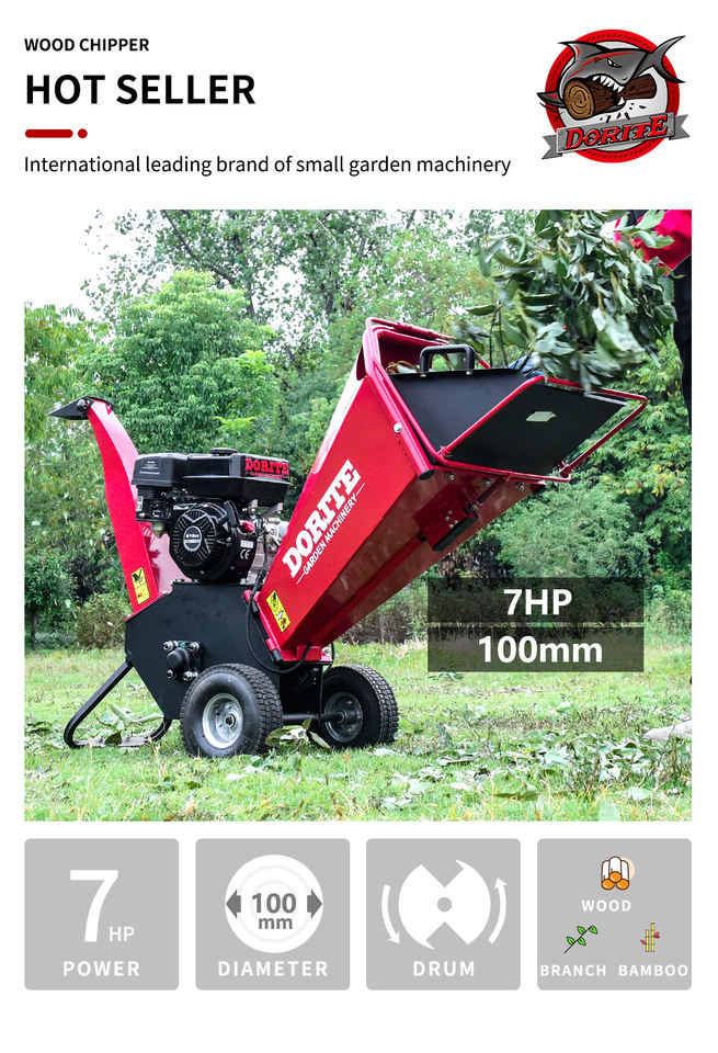 K-maxpower déchiqueteuse moins chère 10cm 7HP déchiqueteuse à essence Dorite essence mini déchiqueteuse à brosse en bois