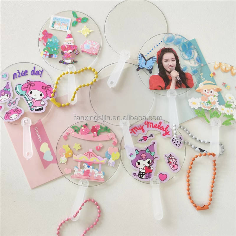 Marchandise k-pop personnalisée Kpop Mini piquet Ventilateur à main transparent en plastique Image du ventilateur Piquet holographique avec chaîne