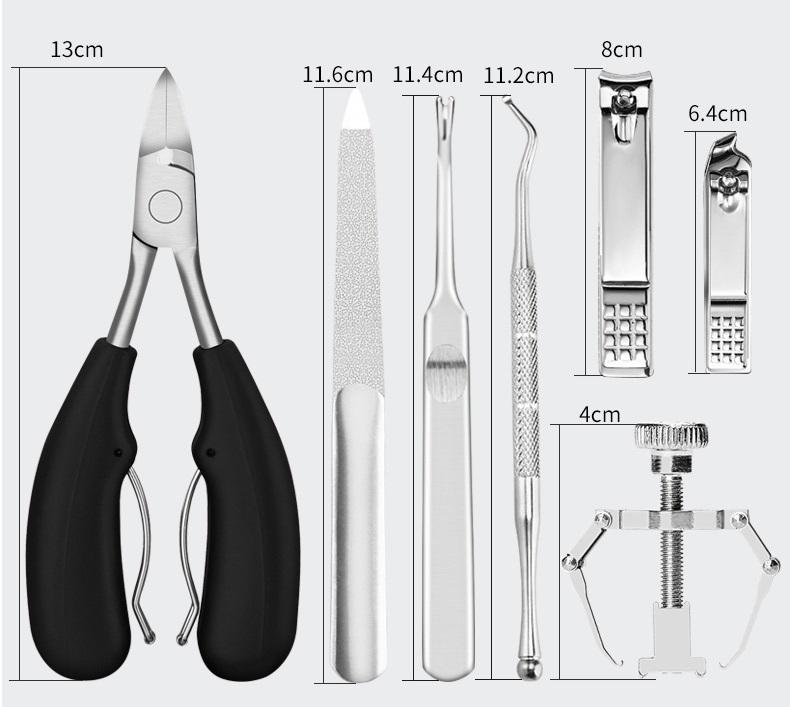 K1027 Coupe-ongles en acier inoxydable pour orteils et doigts Coupe-ongles correcteurs pour enlever la saleté de la peau morte Outils de soins de pédicure Ensemble de 7 pièces