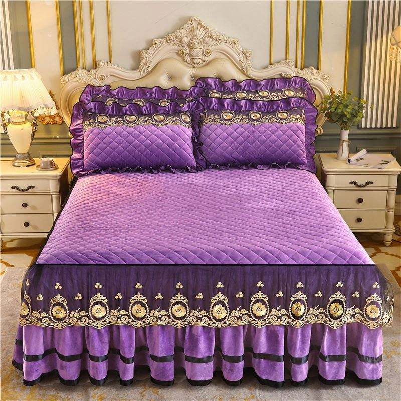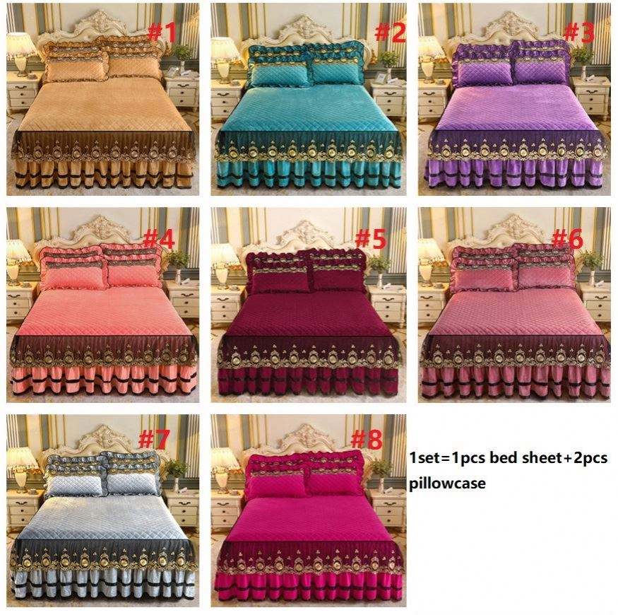 K1230 Cotton Blend Bed Sheet Cover Wedding Housewarming Graceful Bedspread Lace Fitted Sheet Cotton Bed Cover Skirt