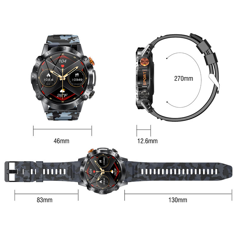 Télécommande, Chronographe, Répondre à un appel, Rappel de Téléphone, Lancer essage, Compte à rebours, Pisteur fitness, Rappel de message, Alarme horloge, Compteur de pas, Sommeil, Composez un numéro, Fréquence cardiaque TrackerFonction