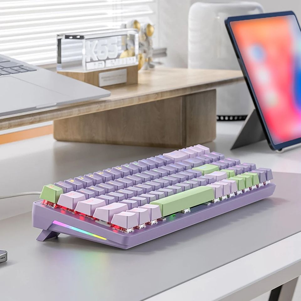 Clavier de jeu mécanique filaire K65 RGB rétro-éclairé à chaud pour PS4 PC Win Mac Gamer