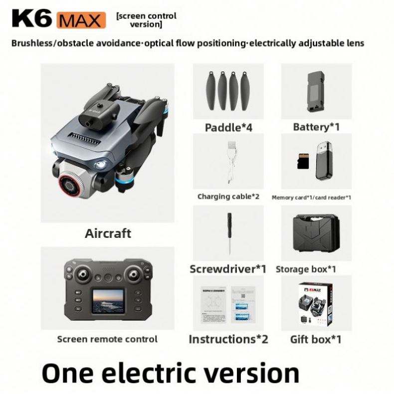 Drone K6Max pliable pour débutants avec écran, positionnement par flux optique, gyroscope 6 axes, moteur brushless, télécommande et caméra 4K