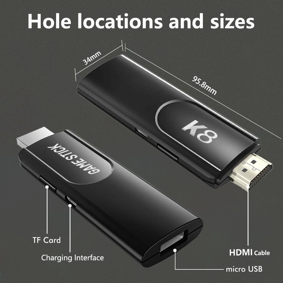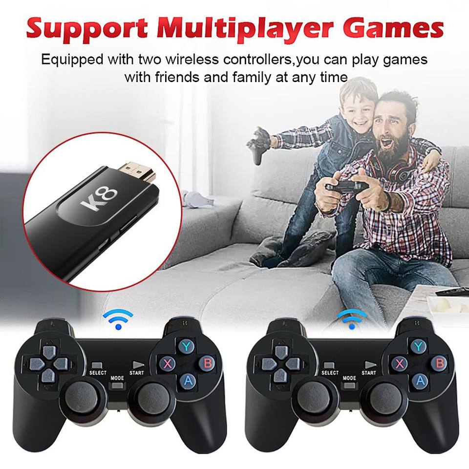 Lecteur de console de jeu TV K8 HD 4K Bâton de jeu TV Console de jeu vidéo classique avec émulateurs PSP N64