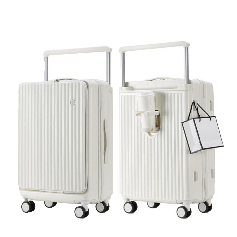Valise à ouverture frontale K88 24 pouces avec serrure, roues pivotantes à 360°, couleur unie blanc cassé, rose, noir, vert, beige, bagage de voyage unisexe