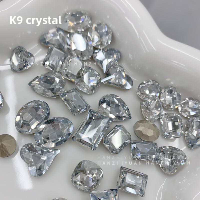 Décoration d'ongles en strass de cristal K9, rectangulaire, à angle droit, bleu scintillant, à fond pointu, effet bonbon de roche, Cy0510