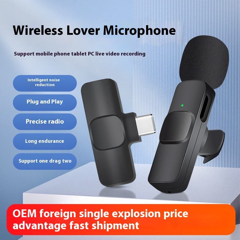 Microphone Lavalier dynamique sans fil K9 LED à réduction de bruit omnidirectionnelle Enregistrements en direct pour téléphone portable Radio vidéo extérieure