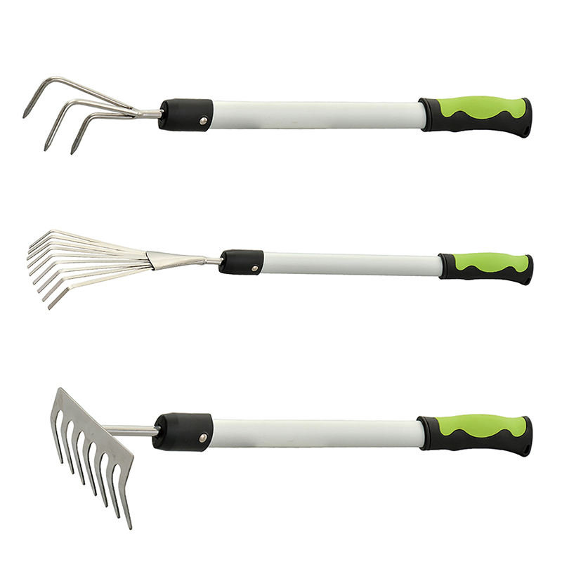 K905 Outils de jardinage Mini houes à main pour désherbage Râteau à sept dents Râteau de culture Mini râteau à manche en aluminium bicolore personnalisé