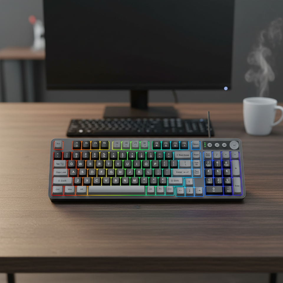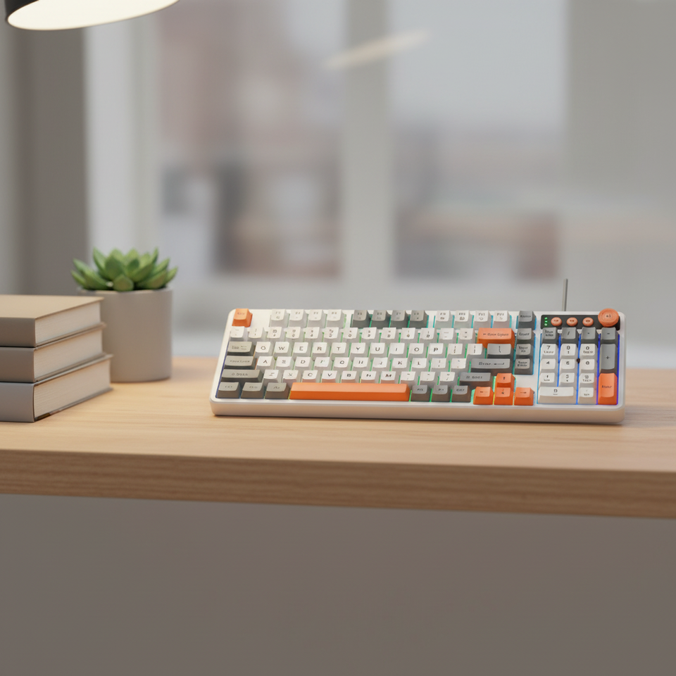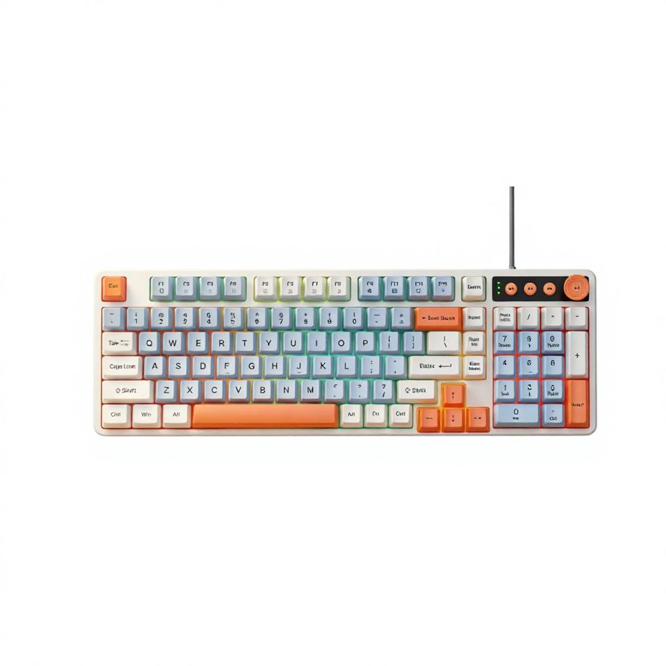 Clavier de jeu USB LED K98 pour e-sport, taille standard, pour ordinateur portable, bureau, silencieux, touches en plastique colorées, nouveau, programmable