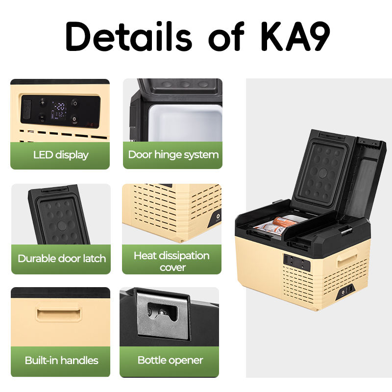 Réfrigérateur de voiture Alpicool KA9, compresseur électrique DC AC, puissance 12 volts, glacière de voyage pour voiture, camping, réfrigérateur portable pour voiture