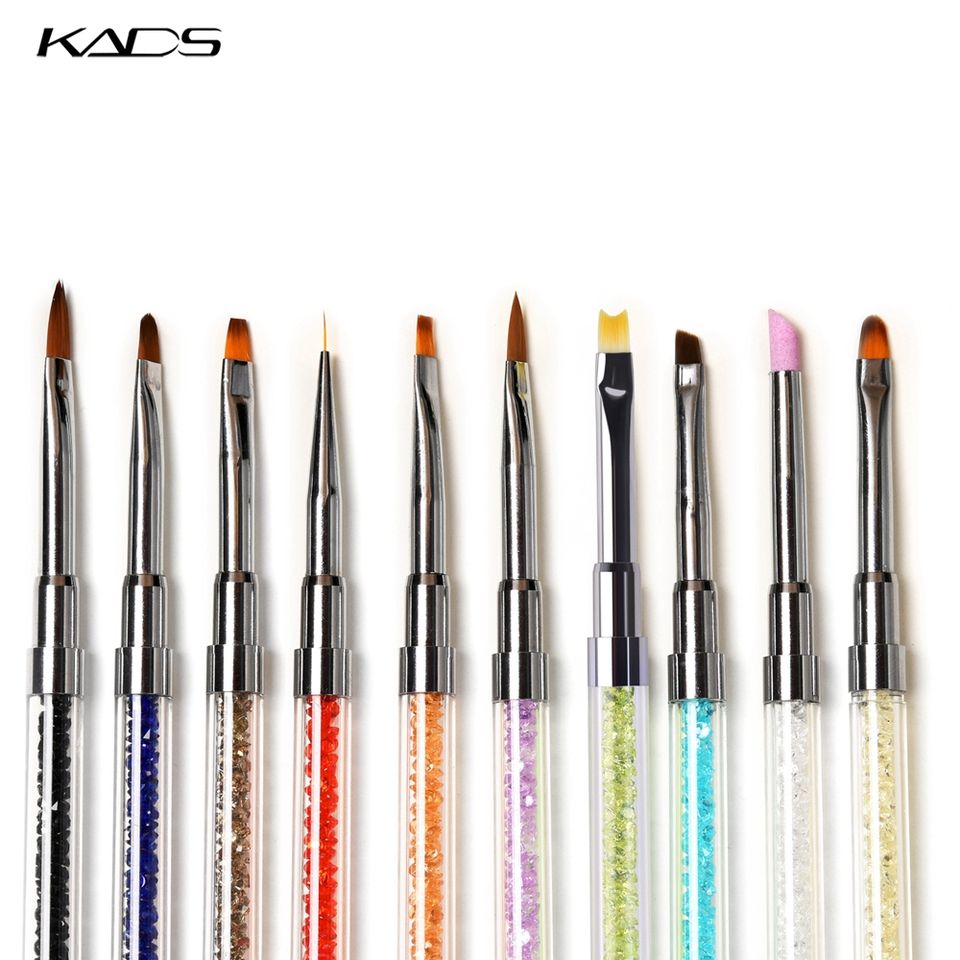 Pinceau à ongles KADS avec manche en strass et cristaux, pinceau en nylon pour extension de gel UV, outils de manucure, stylo de dessin pour nail art
