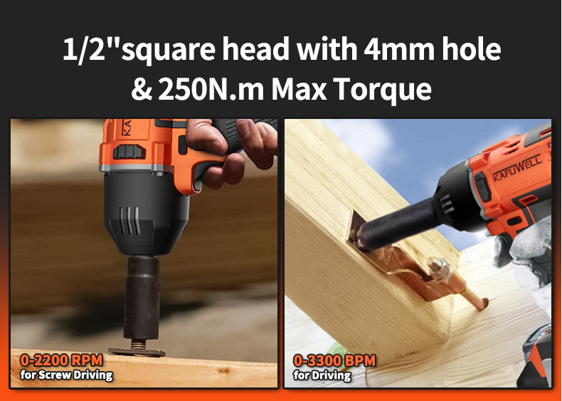 KAFUWELL PA4505HE-W-2 Outils électriques sans fil au lithium 20v de bonne qualité, clé à chocs 250n.m