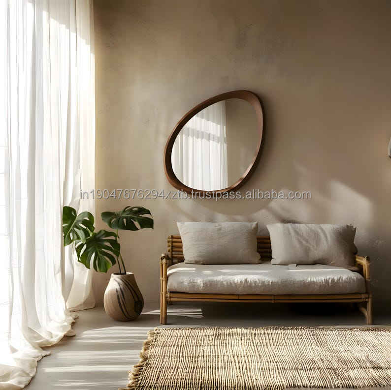 KALATRI Asymmetrical Wooden Art Deco Water Drop Wall Mirror Handmade Eco-Friendly Lightweight Hotel Home Decor