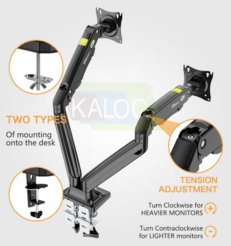 Support d'écran d'ordinateur de bureau LED LCD à double bras KALOC DS110-2, très vendu, compatible avec les écrans jusqu'à 32 pouces