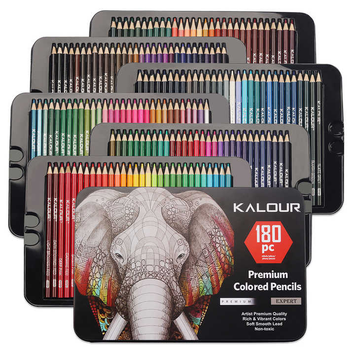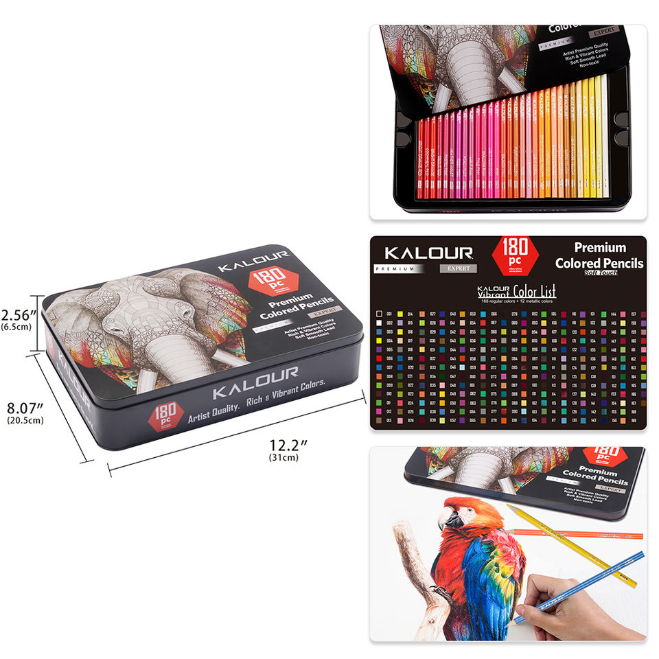 KALOUR Art Supplies Professional 180 Colored Pencil Set in Tin Box with 180 Vibrant Colors and Soft Core Lead for Drawing