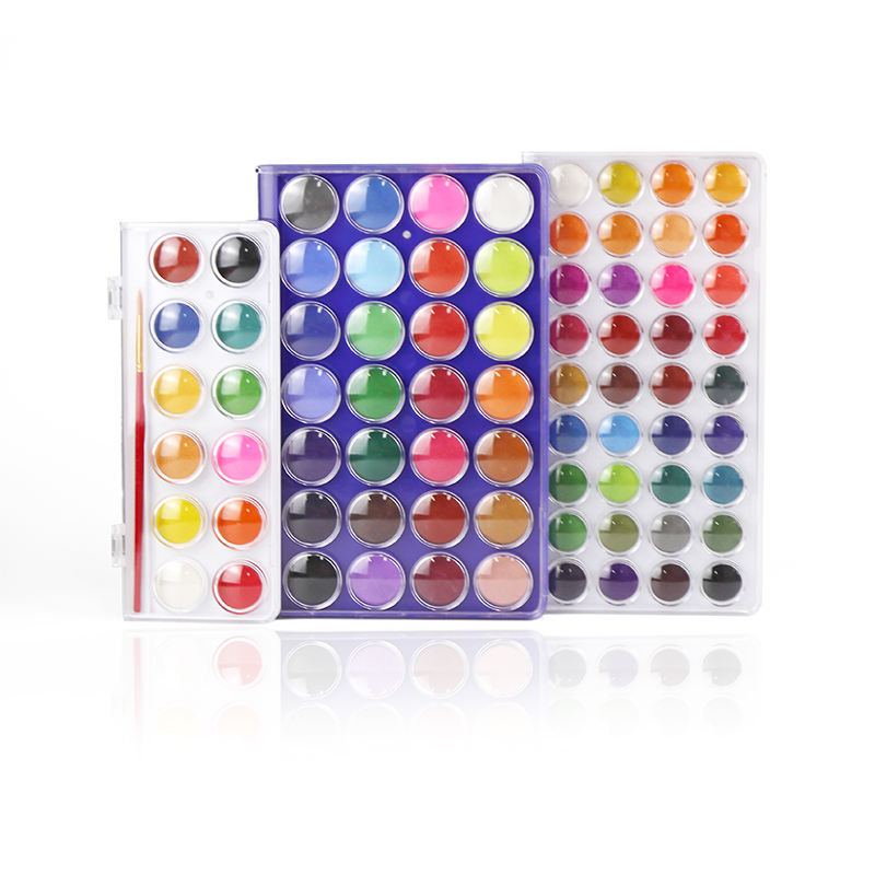KAMEI Vente en gros de 12/24/36 couleurs de peinture aquarelle solide avec stylo pour débutants et professionnels, fournitures artistiques en boîte pour le dessin