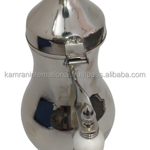 Théière à café arabe traditionnelle KAMRAN, finition miroir argentée, 1L, écologique, poignée perlée en marbre blanc, à charnière