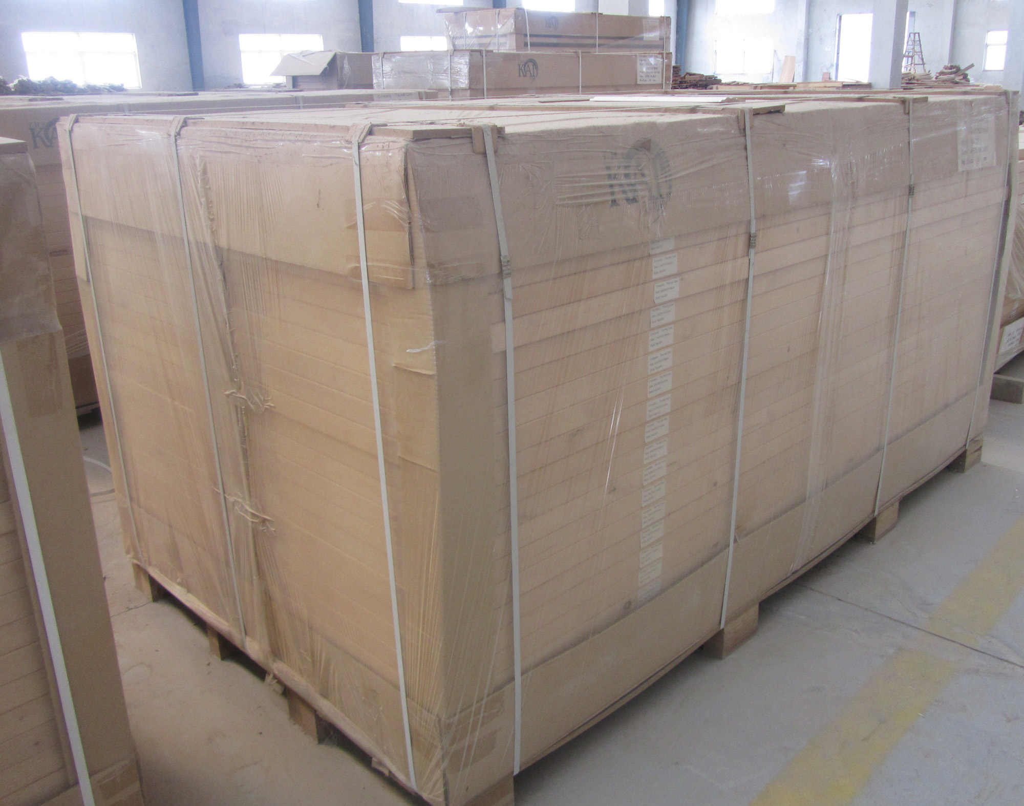 wrapped with plastic film and pallet .