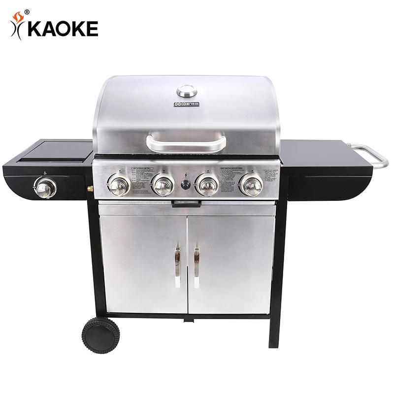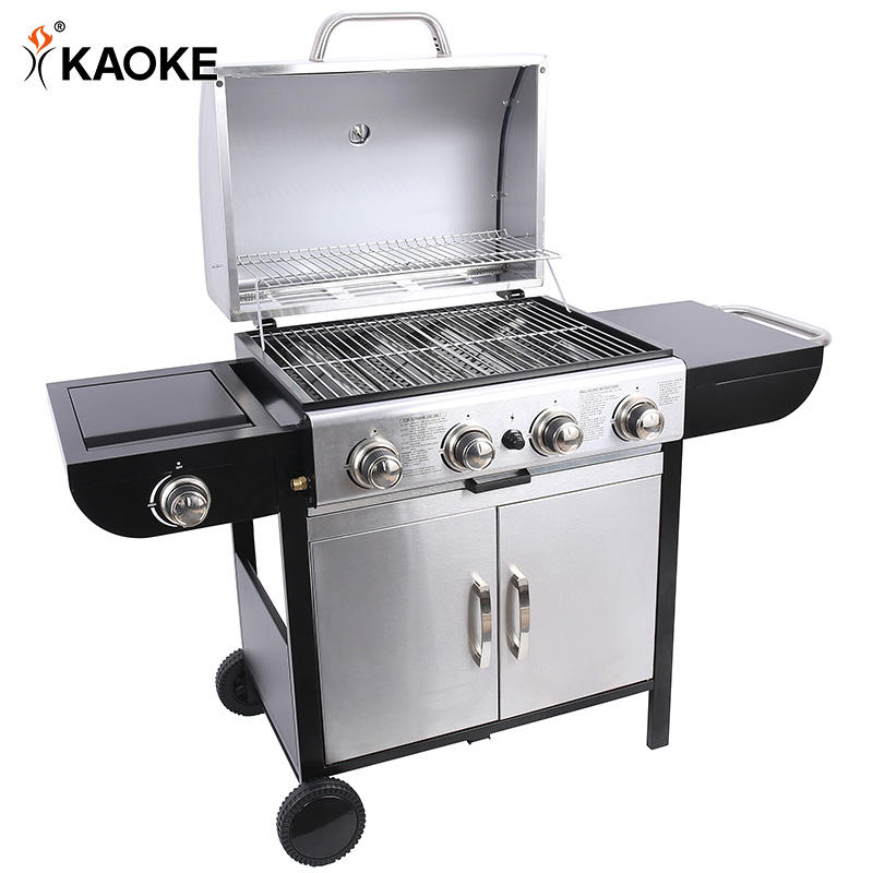 KAOKE Barbecue au gaz fait maison de 25 pouces pour l'extérieur, 4 brûleurs avec brûleur latéral, fournisseur de barbecue au gaz