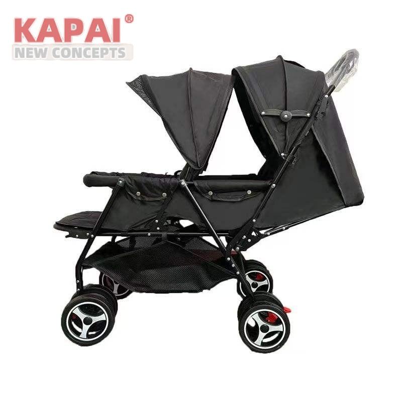 Poussette double moderne KAPAI pour bébés et tout-petits, légère, pliable facilement, grand panier de rangement, réglable