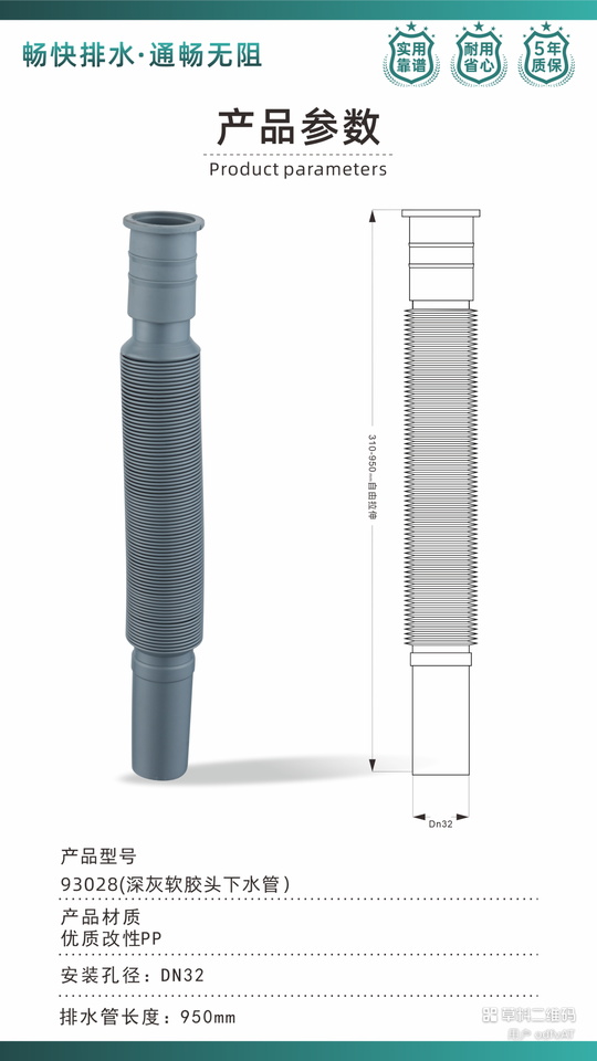 KAWAL Wash Basin Drain Pipe - Durable Sink Drainage Extension Tube for Bathroom & Kitchen Sewer