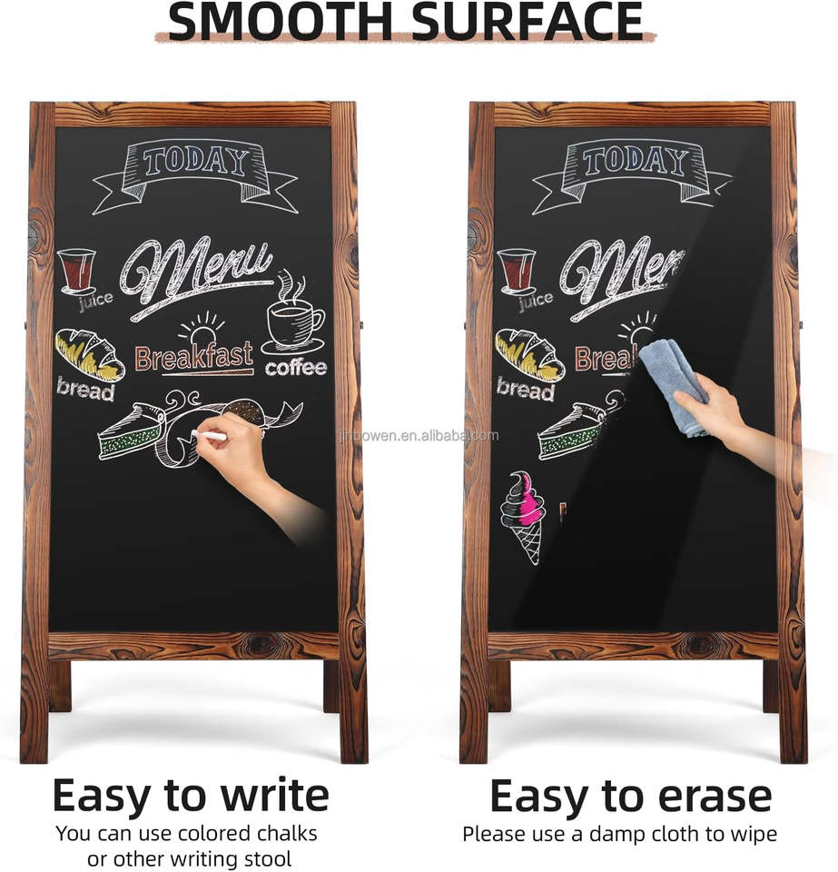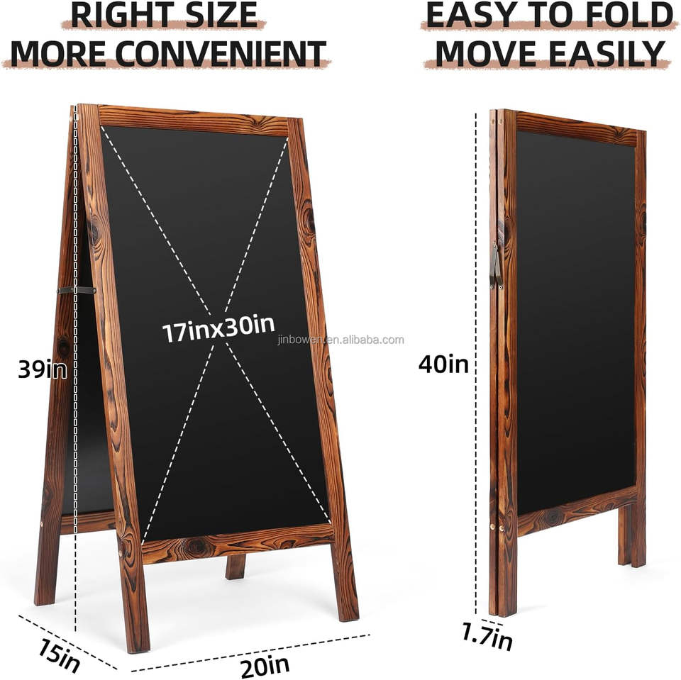Tableau noir magnétique sur pied en bois KBW Outdoor A-Frame 40x20 pour menu de trottoir, idéal pour cuisine, bar, maison, restaurant