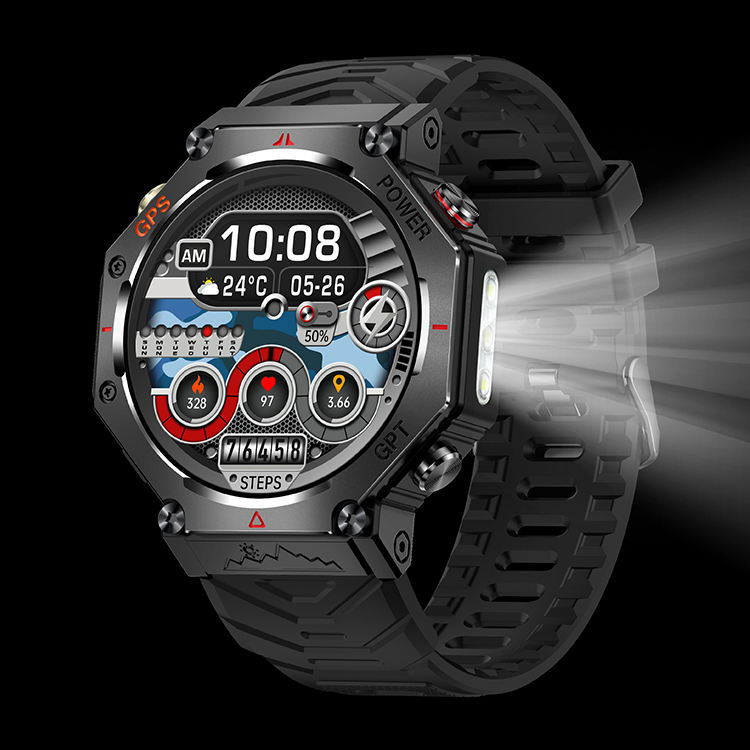 Montre connectée KC91 avec GPS, ChatGPT, lampe de poche, moniteur de fréquence cardiaque, moniteur de sommeil, tracker de fitness pour activités de plein air