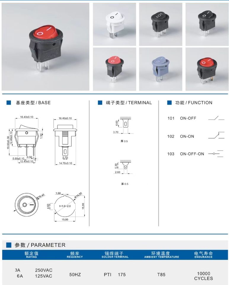 Interrupteur à bascule LED blanc et rouge KCD1 KCD2 Dtdp marche/arrêt KCD3 KCD4 Interrupteur à bascule rond pour bateau T85 Interrupteur à bascule rond de 15 mm