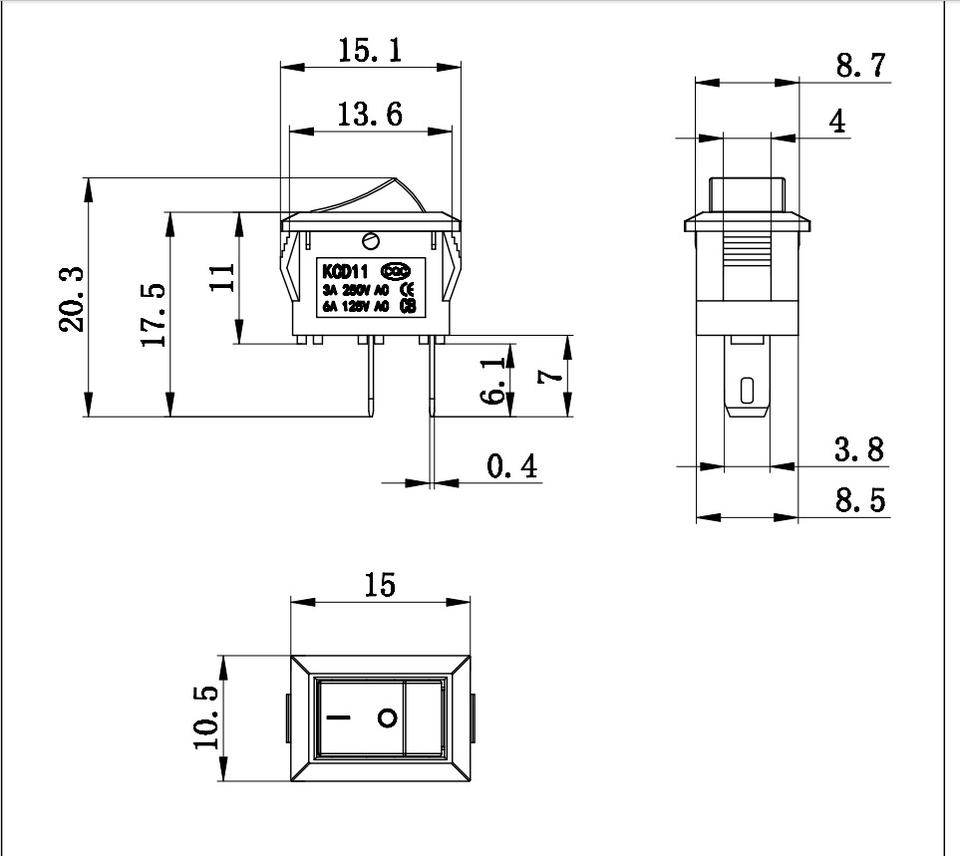 Interrupteur à bascule miniature KCD11 10x15mm 3A SPST 2 positions avec bornes longues, interrupteur d'alimentation rouge/noir/blanc, vente en gros