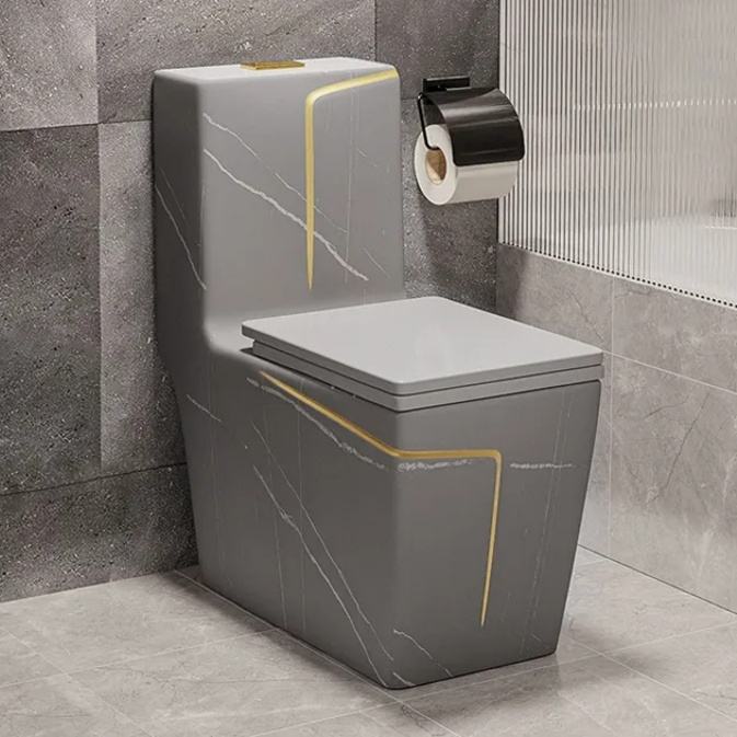 WC monobloc en céramique émaillée gris KD-19CTB, excellent rapport qualité-prix, avec siège carré, à poser au sol
