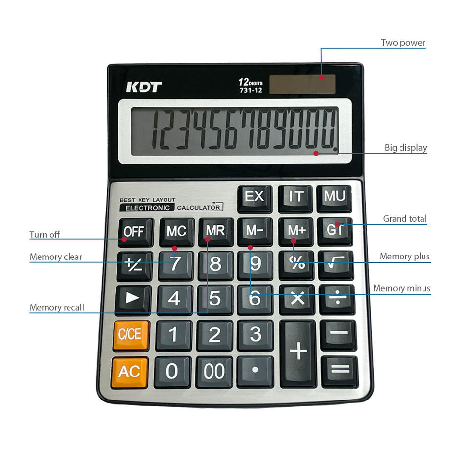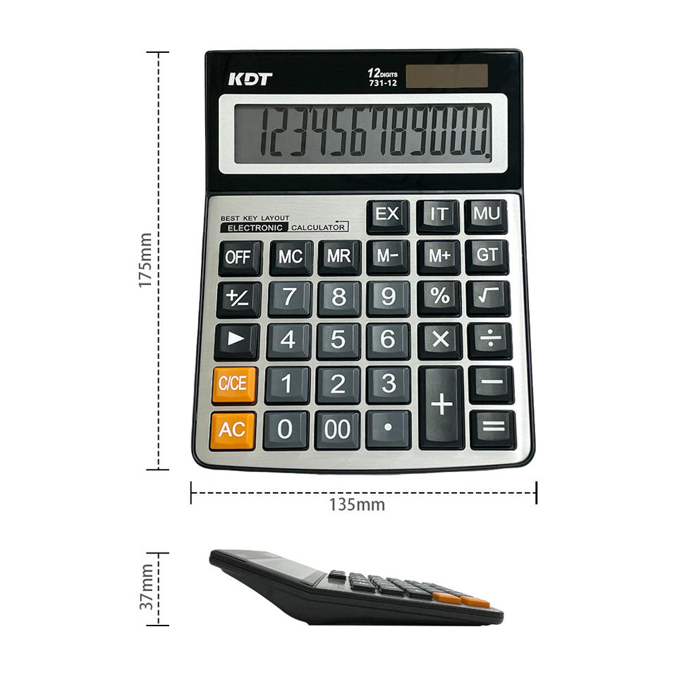 KDT 12-Digit KT-731 Desktop Calculator with Plastic Metal Panel Big Buttons Dual Power Large Display Screen-for Office Students