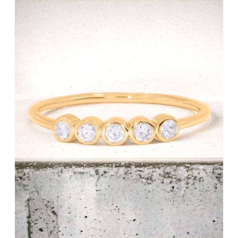 KEEVA JEWELS Bague empilable en or massif à 5 pierres 0.17Ct FG/VS Round Lab Grown Diamond Bezel Set