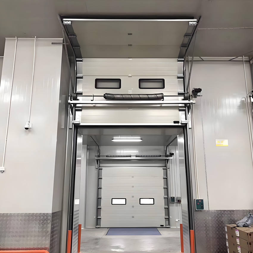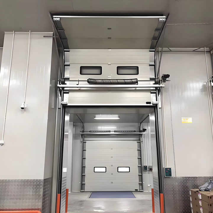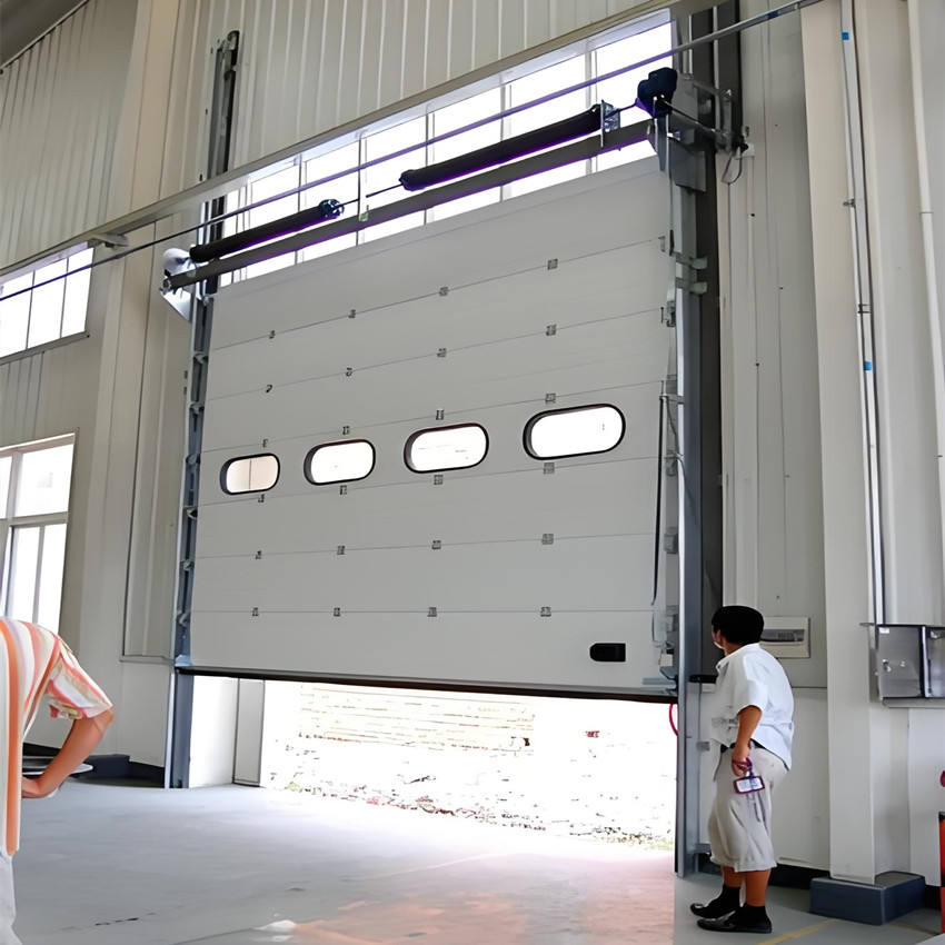 Porte de garage sectionnelle verticale automatique industrielle KENVO DOOR en acier, isolation thermique, indice de résistance au feu B1 pour usine
