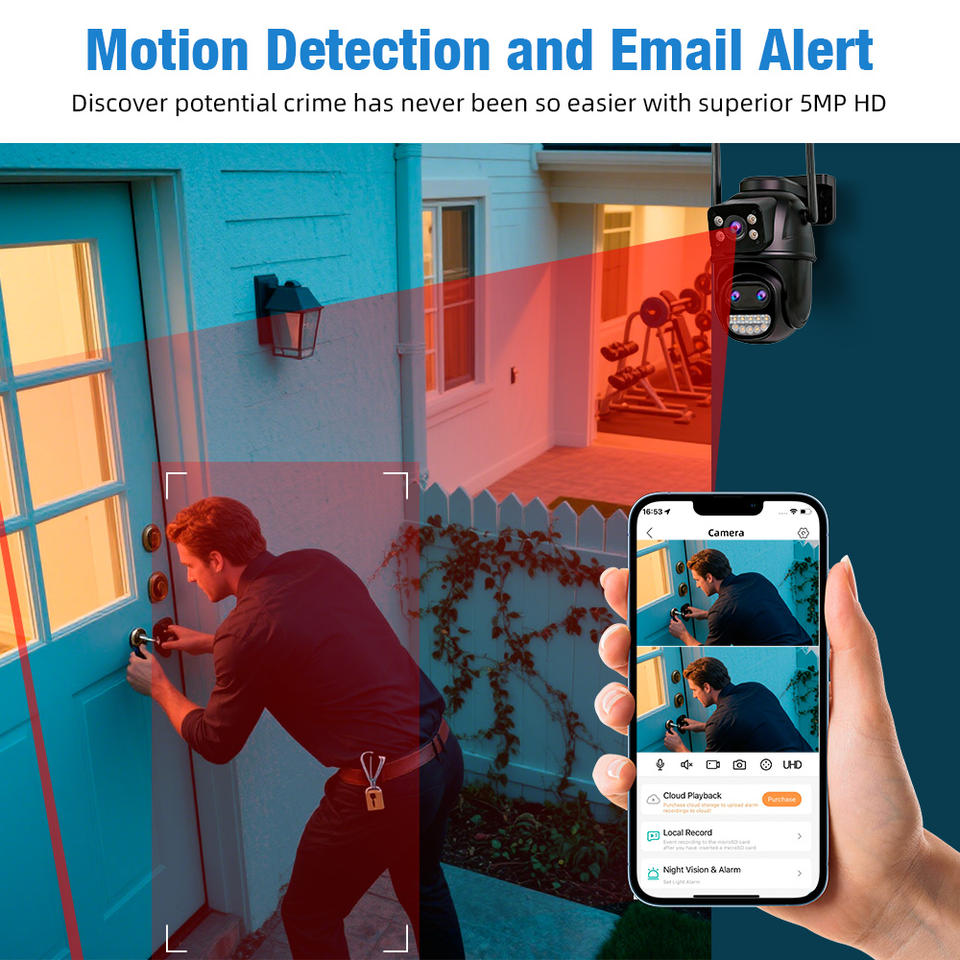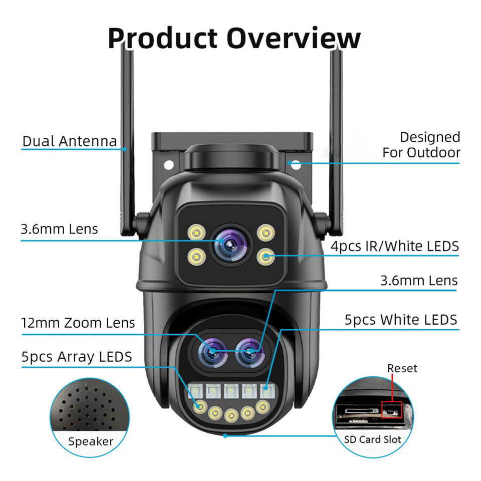 Built-in Sirène, Détection de visage, L'homme De Suivi De Mouvement, Détection de mouvement, Vision nocturne, PAN-TILT, Imperméabilisez/protégez contre les intempéries, Audio bidirectionnel