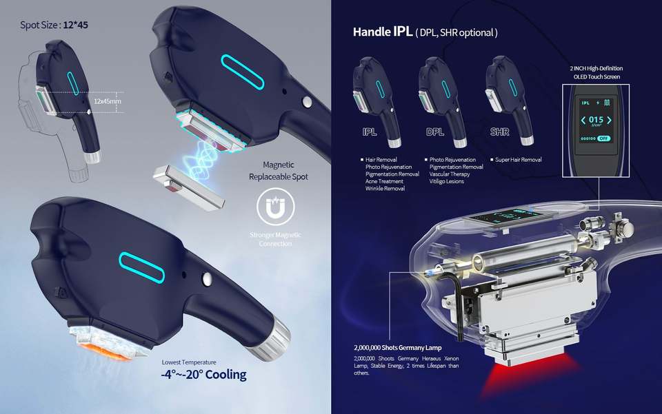 Pièce à main:Total1 (1 poignée IPL, 2 poignées SHR/sDPL OP)