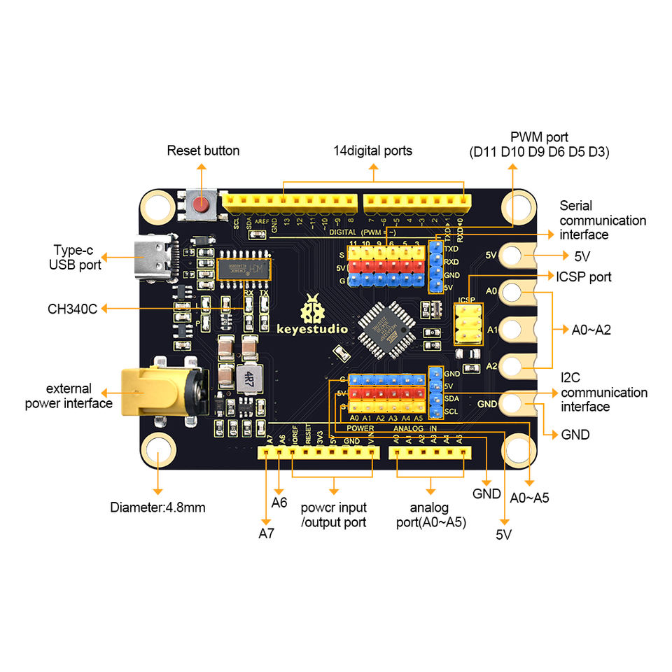 Carte de développement de programmation KEYESTUDIO Super ATmega328P-AU Maker pour blocs de construction LEGO avec Arduino IDE