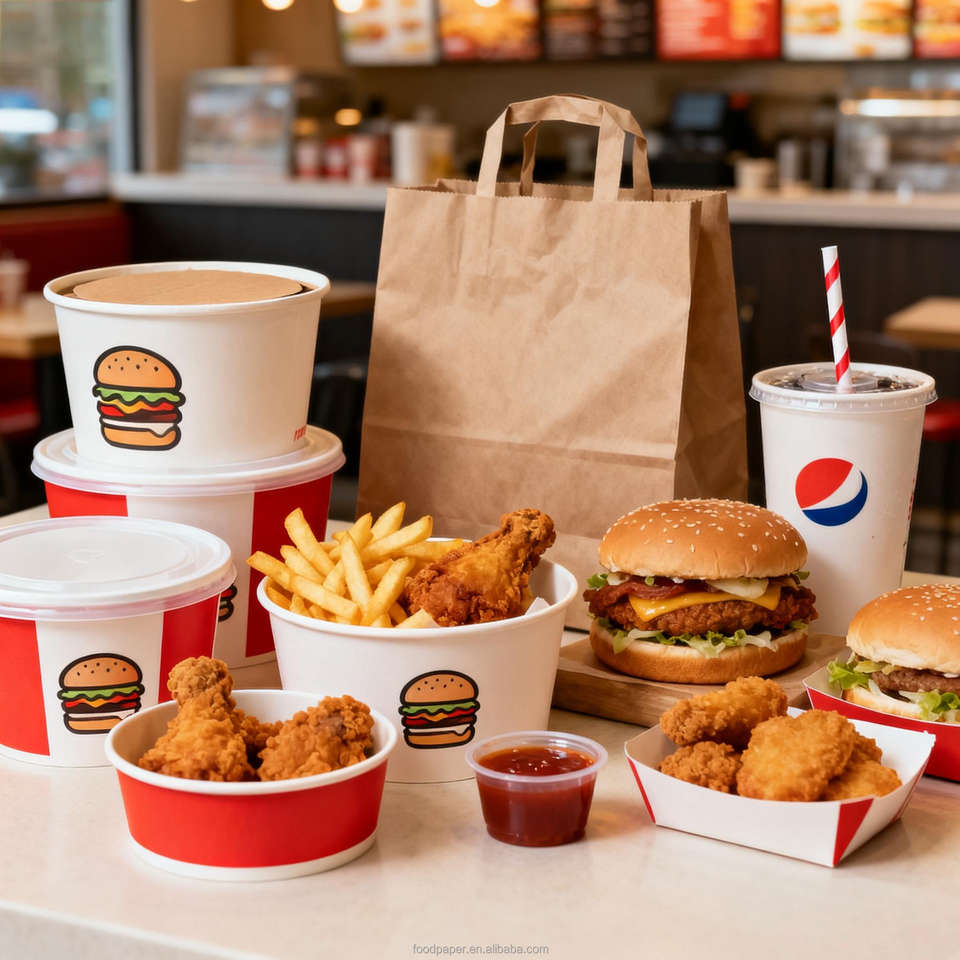 Seau en papier pour poulet frit avec couvercle en papier