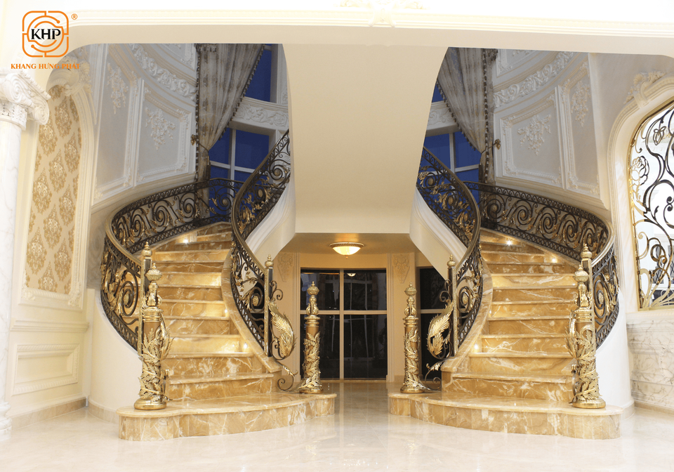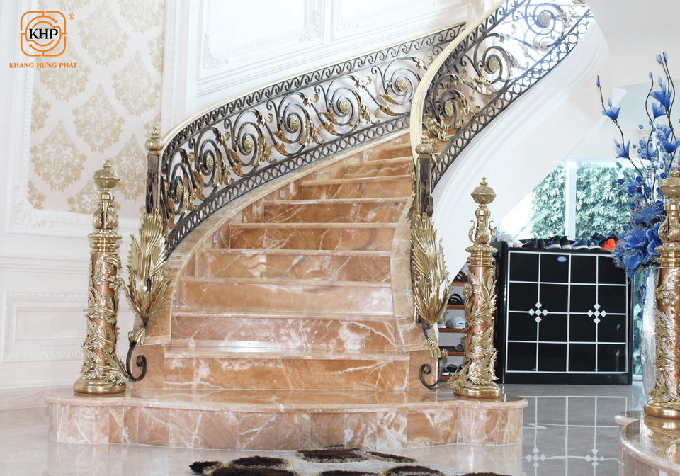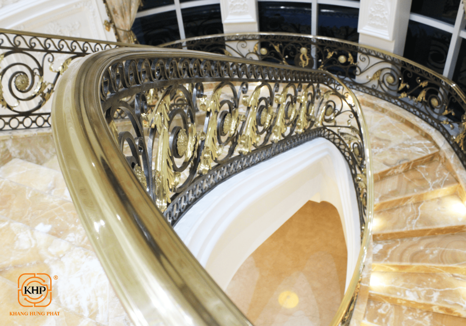 Rampe d'escalier en fer forgé résistant à la rouille KHP, traitement thermique intérieur, matériau durable, composants faciles à installer pour chaque maison.
