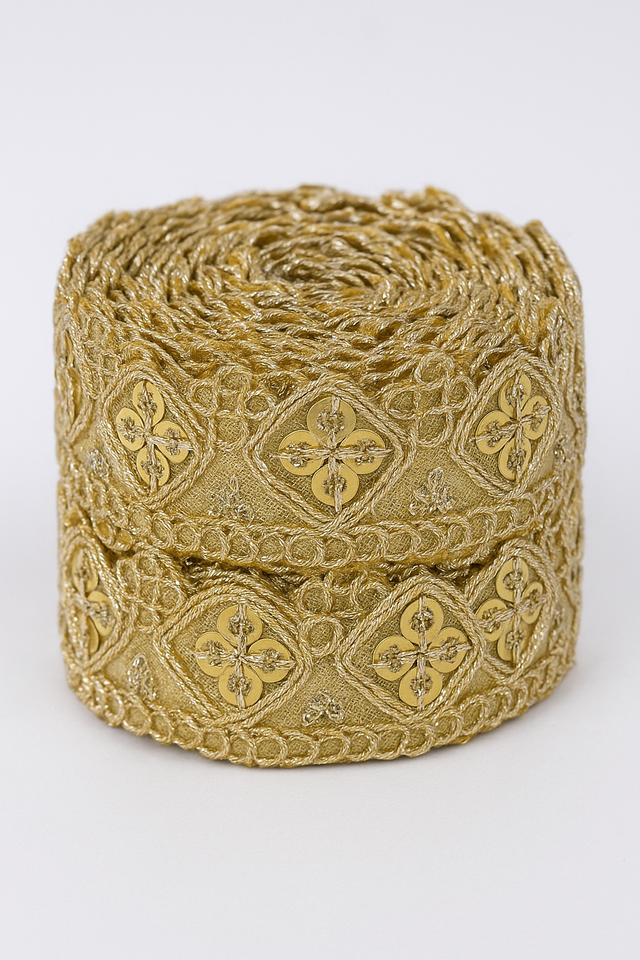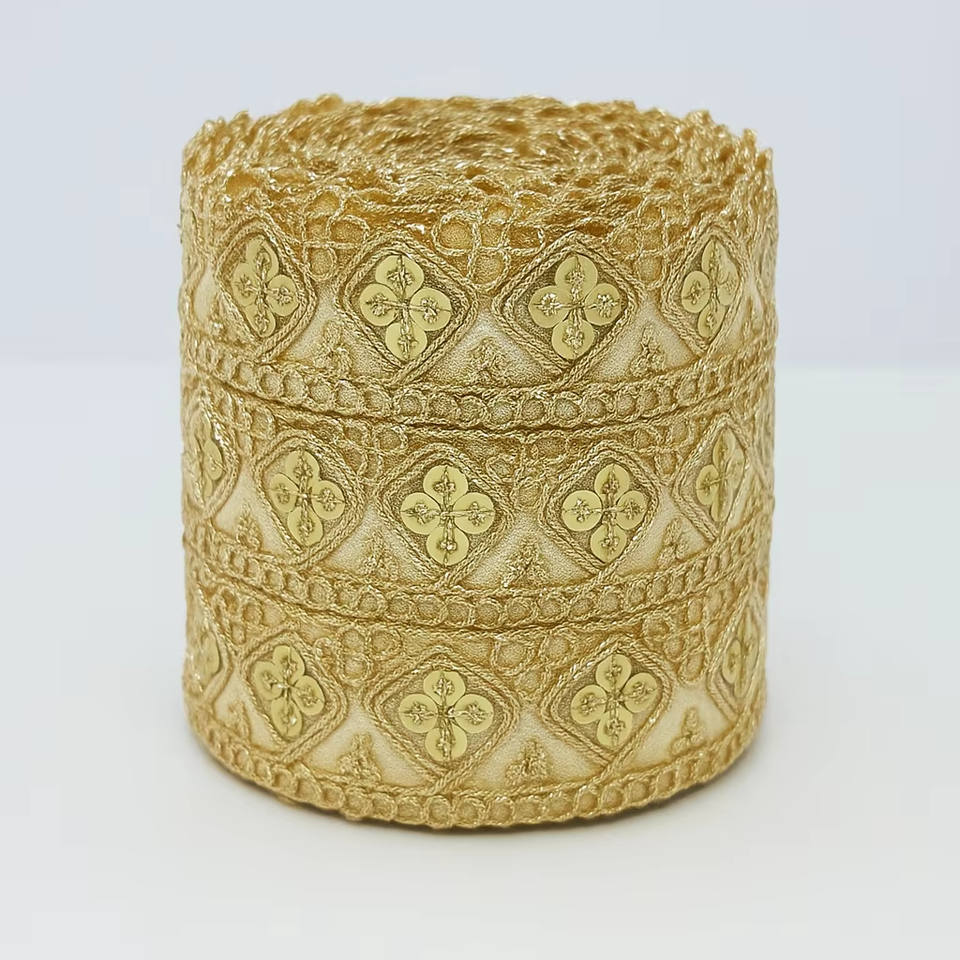 KIARAA Tissu brodé floral fait à la main Bordure en dentelle K1473 Rouleau de 9 mètres pour les styles ethniques de luxe décontractés Romantique traditionnel