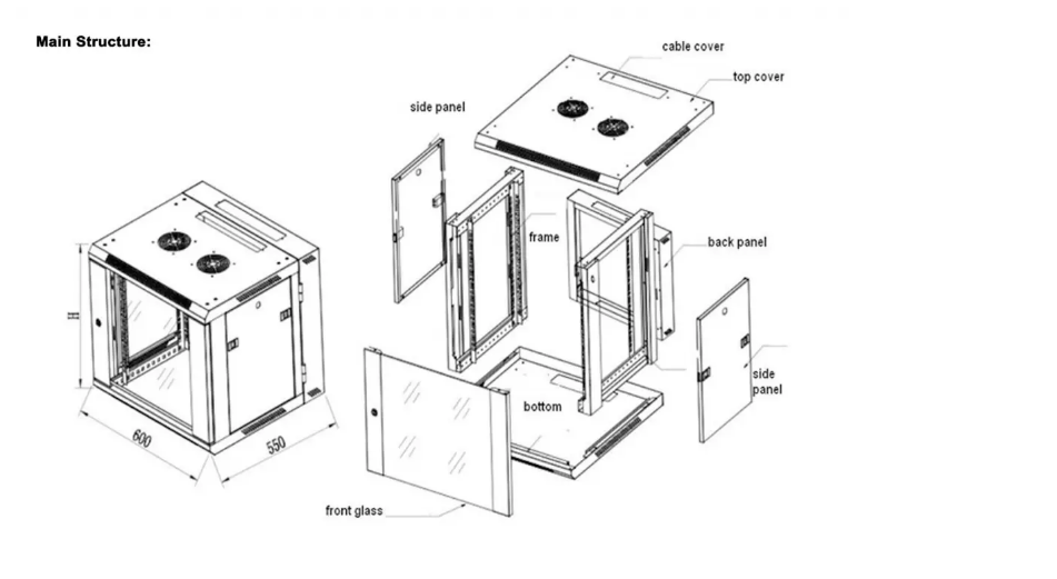 Nom du produit:Cabinet de serveur de bâti du mur 4u-12u