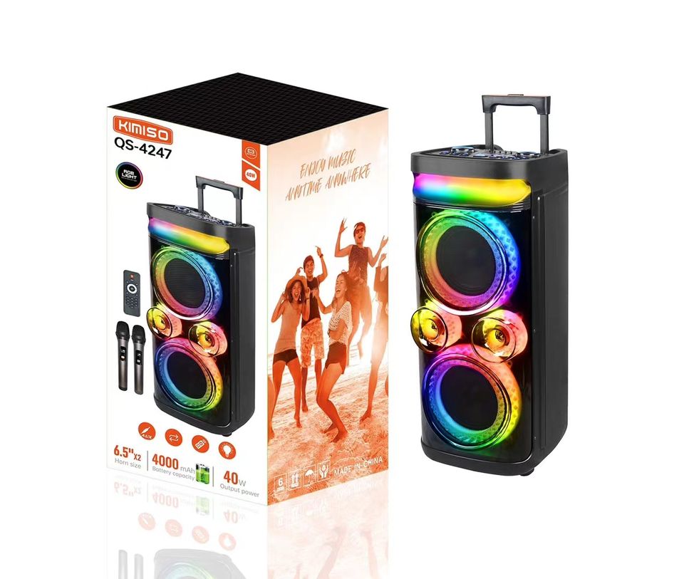 Enceintes portables rechargeables KIMISO Twin 6,5 pouces avec batterie, enceinte Bluetooth RGB, enceinte sans fil USB, DJ, karaoké, microphone